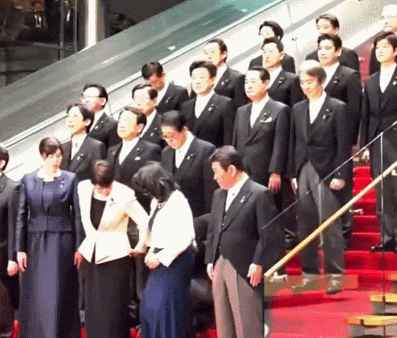 这段视频记录的是前一晚在官邸举行的第二次高市早苗内阁纪念合影现场。