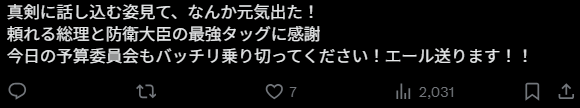 感谢这对值得依靠的首相和防卫大臣的最强搭档。