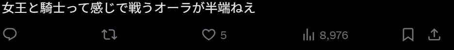 “有种女王和骑士并肩作战的感觉,那种战斗气场强得离谱。”