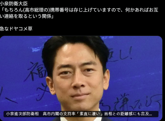 小泉还公开说自己知道高市的手机号,有时候还会互相联系呢。