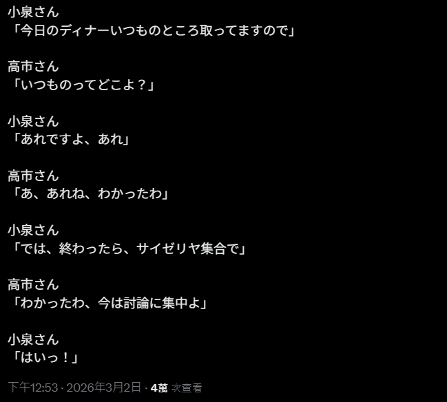 日本网友A脑补了二人谈话内容。
